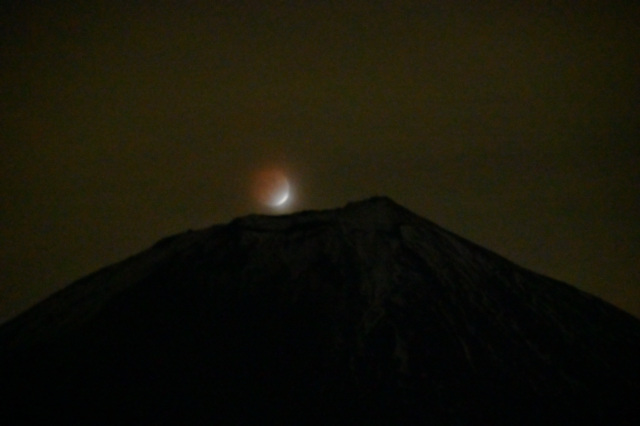 2011年11月19日17:59 富士山と月食(朝霧高原)