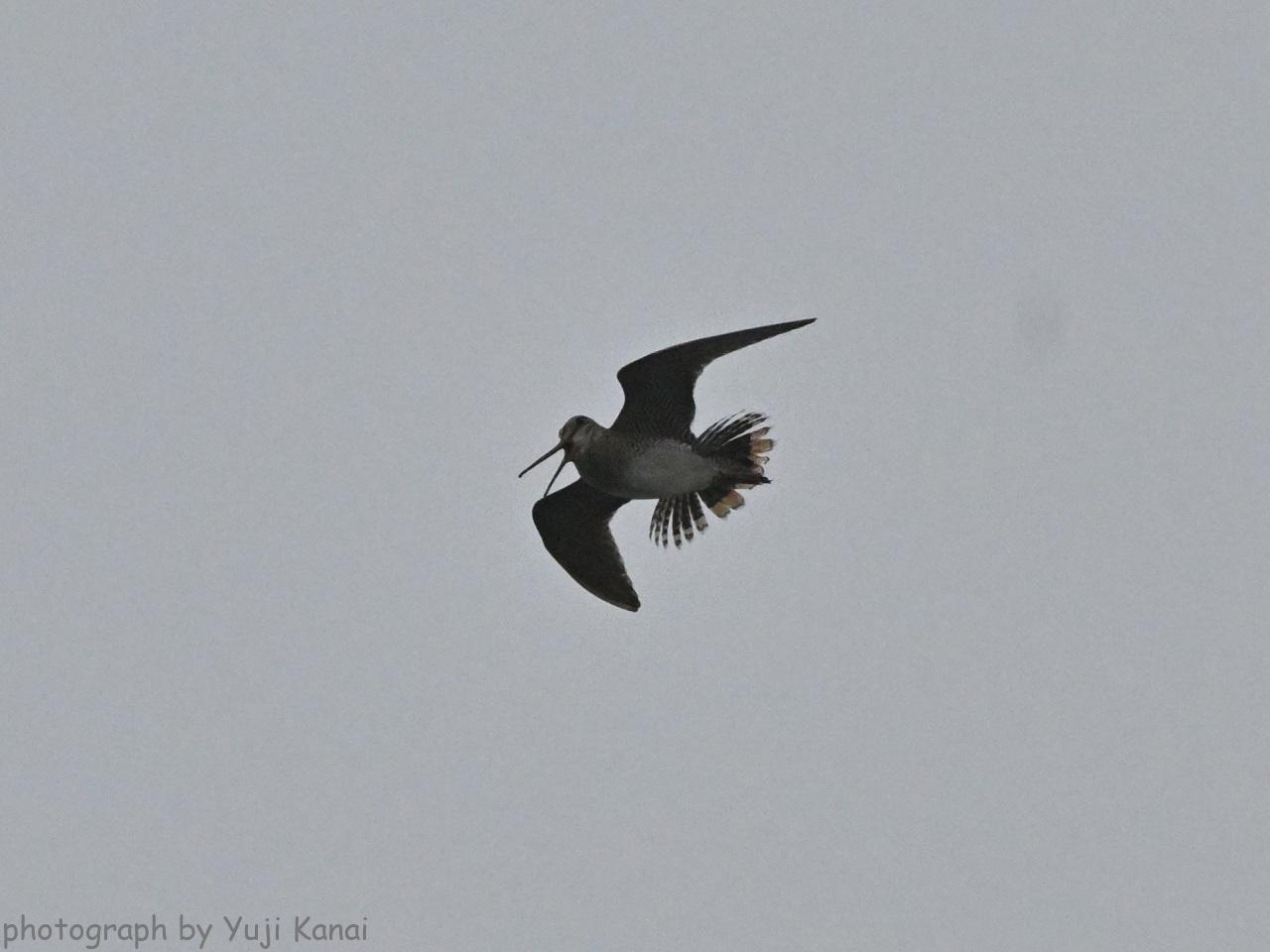 オオジシギ 尾羽を広げて大きな音を出します。